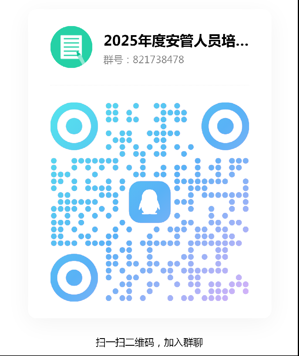 (二)拟参培人员可扫描下方二维码加入“2025年度安管人员培训QQ群”了解培训相关详情。