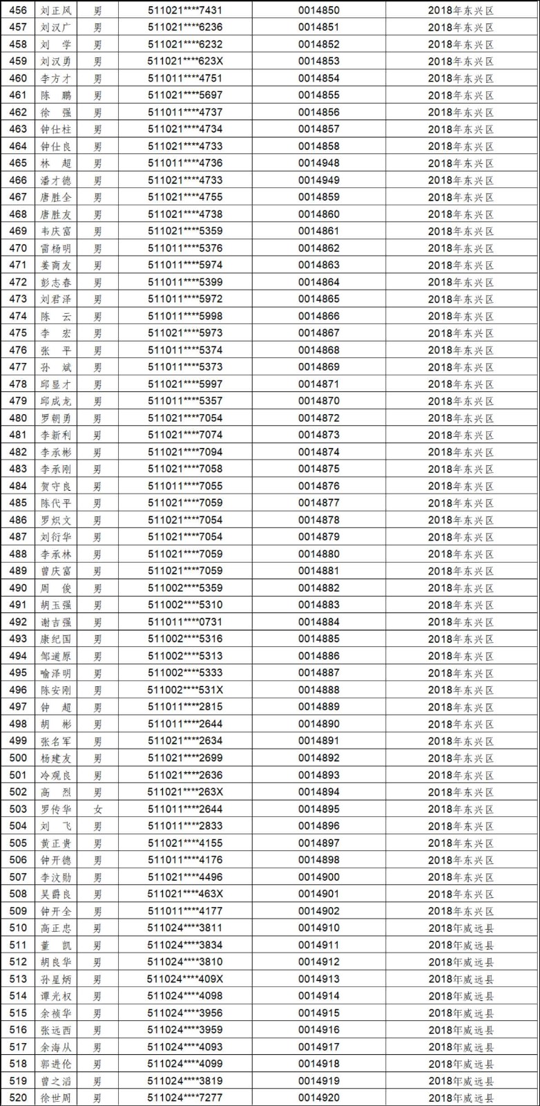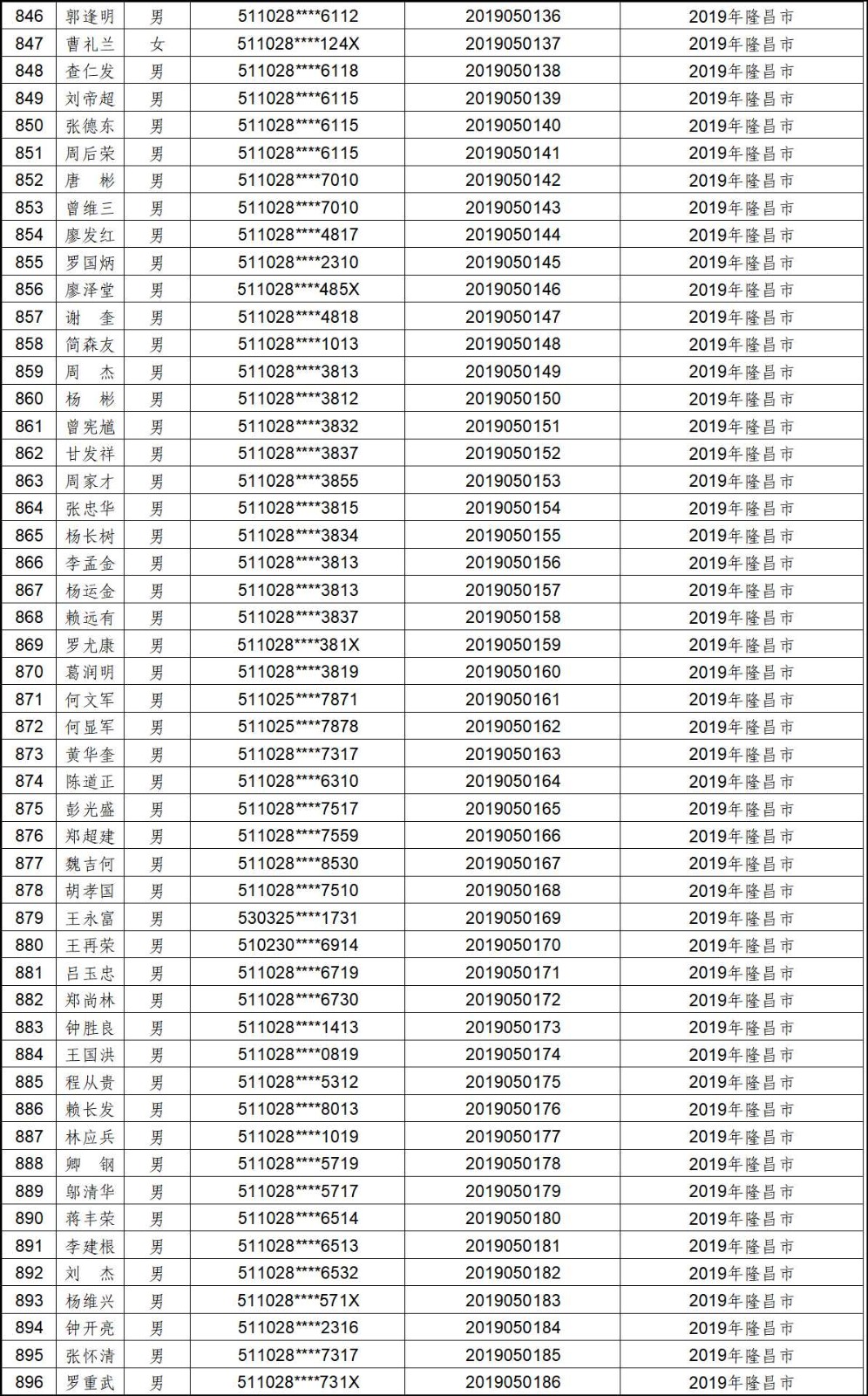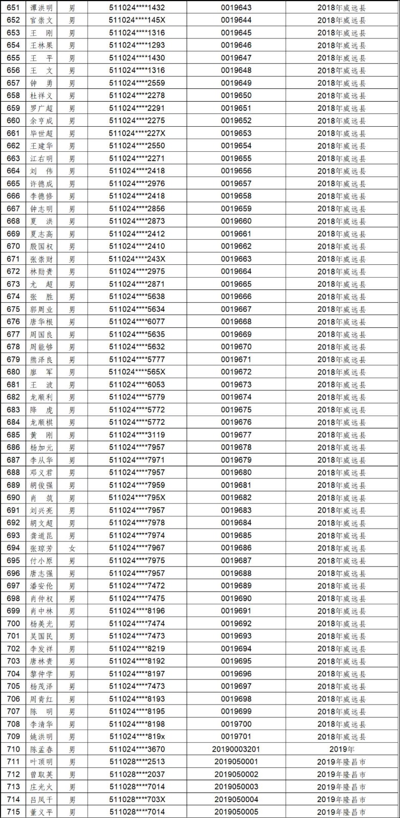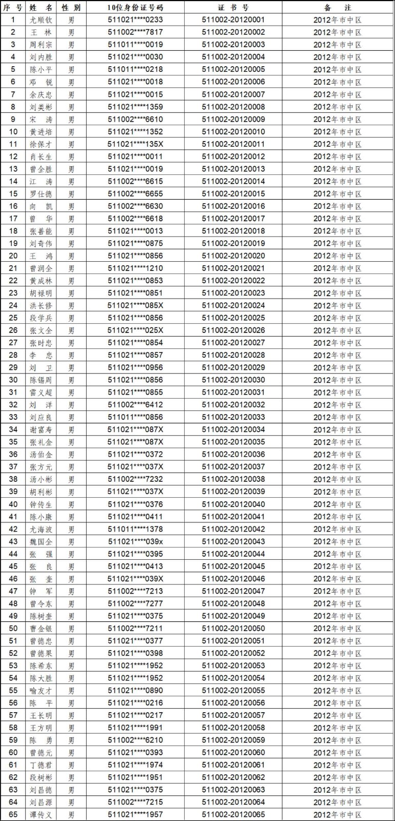 2012年-2019年内江市农村建筑工匠证书信息