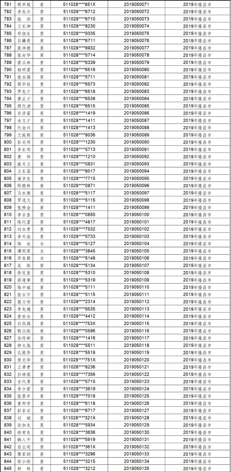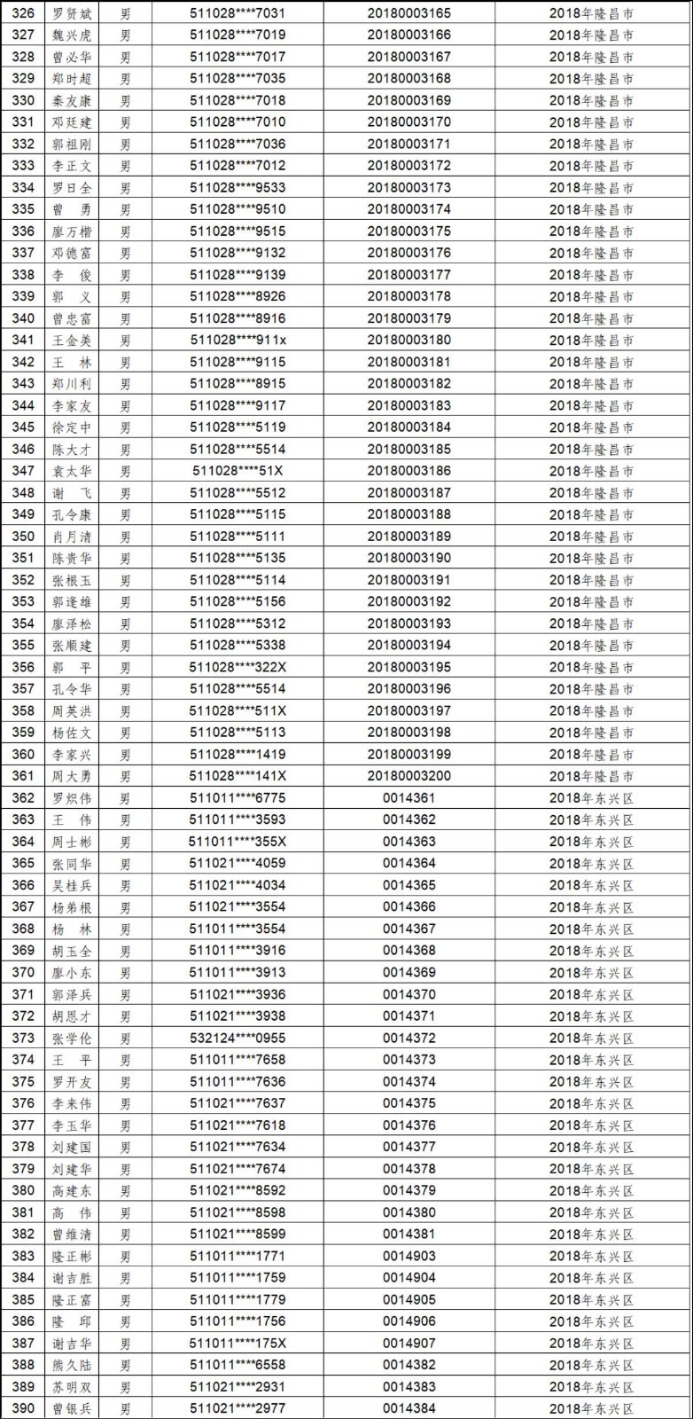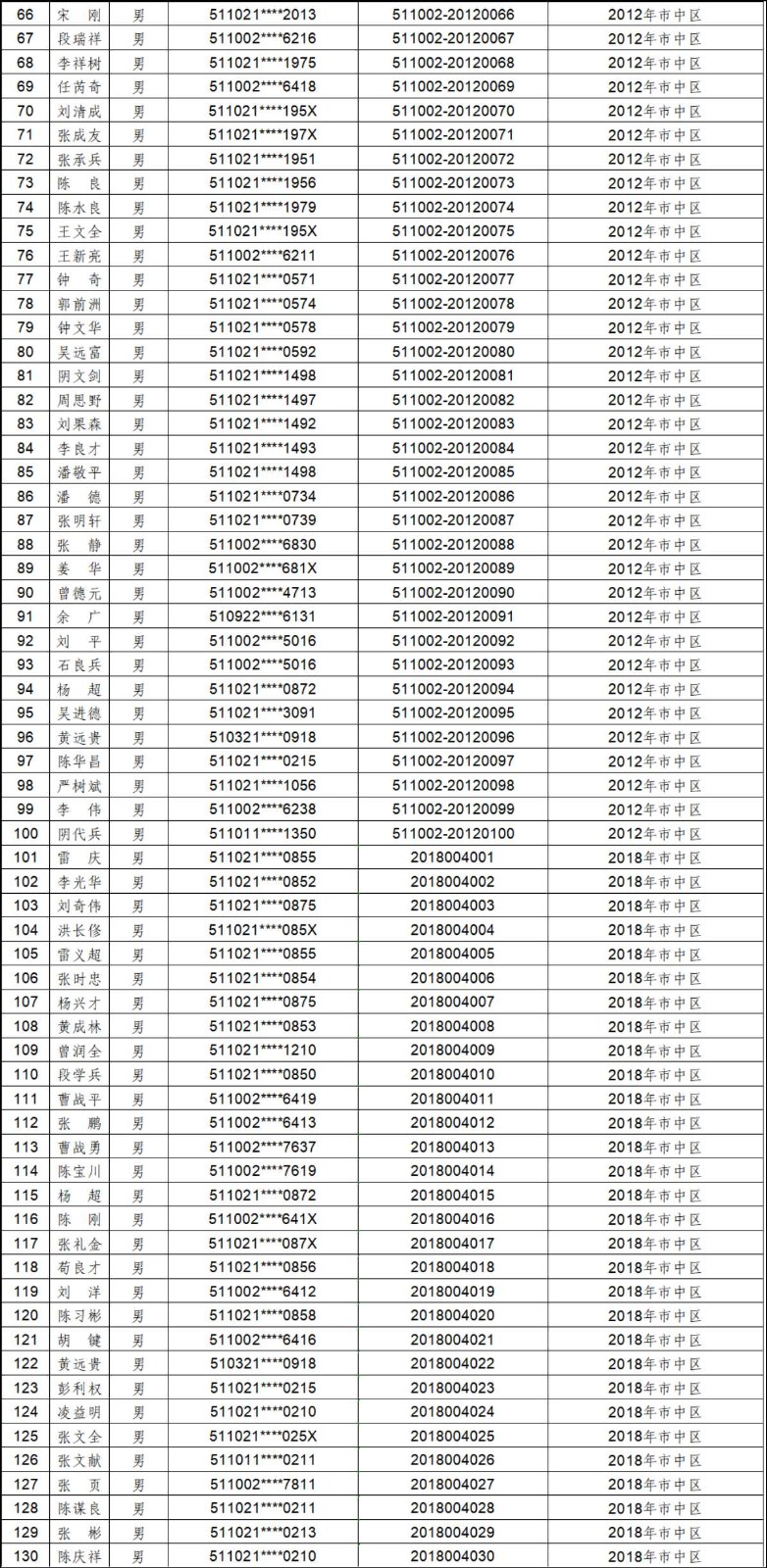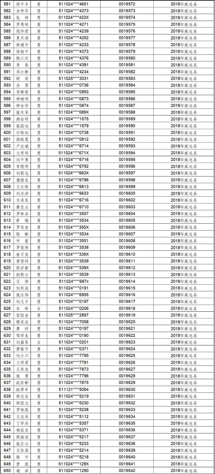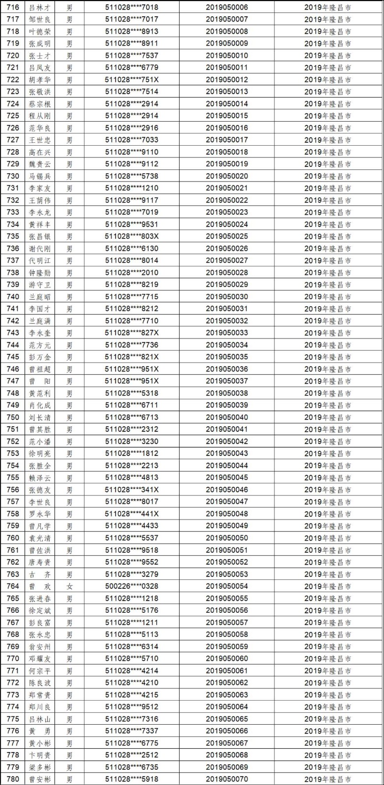 2012年-2019年内江市农村建筑工匠证书信息