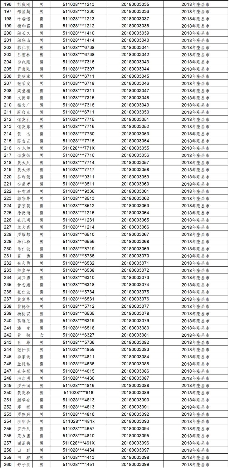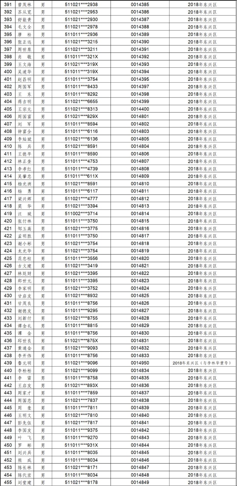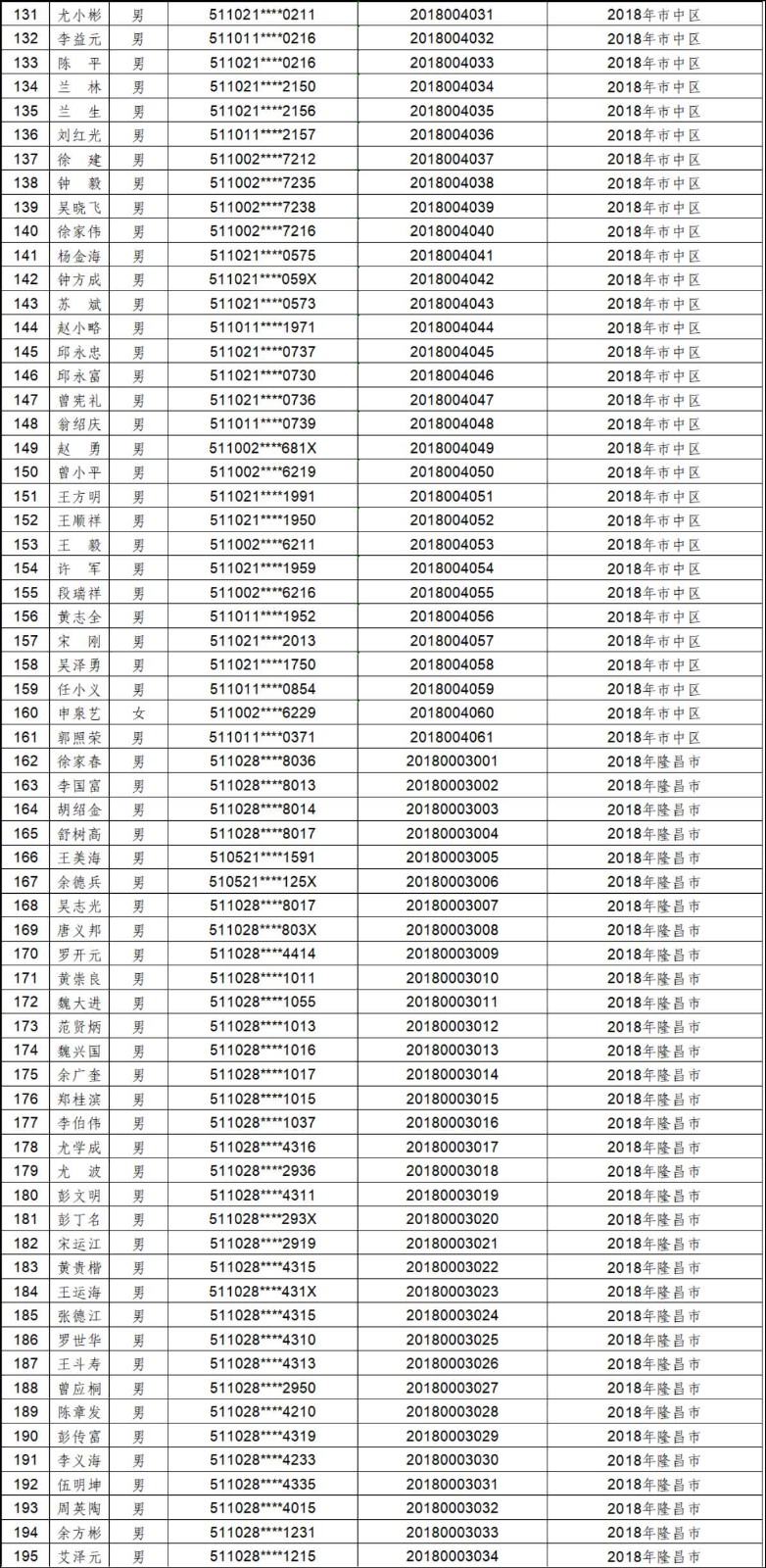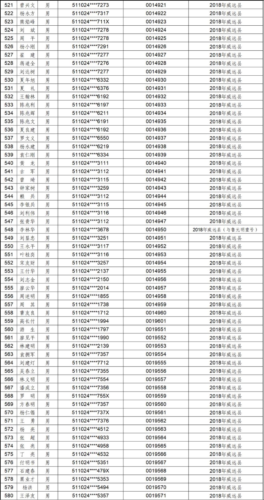 2012年-2019年内江市农村建筑工匠证书信息